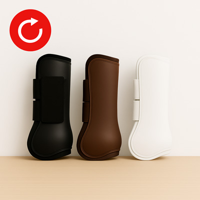 6. **Gamaschen mit offener Front**: Beliebt im Springreiten, schützen diese Gamaschen die Rückseite des Pferdebeins, ohne die Vorderseite zu bedecken. Dieses Design fördert die Präzision, indem es dem Pferd ermöglicht, zu spüren, wenn es mit seinen Vorderbeinen eine Stange berührt.