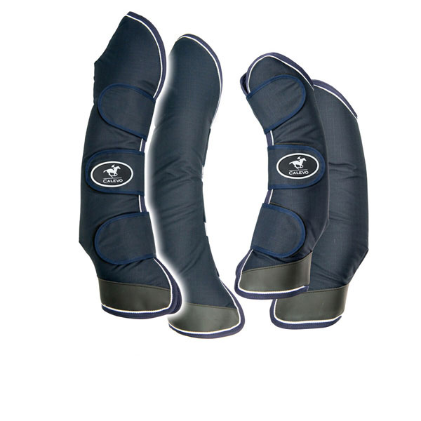 9. **Transportgamaschen**: Diese werden verwendet, um die Beine des Pferdes während des Transports zu schützen. Sie sind in der Regel länger als andere Stiefel und bedecken die Beine von den Knien oder Sprunggelenken bis zu den Hufen.